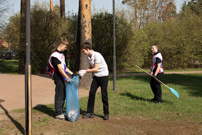 В Раменском сегодня прошёл молодежный субботник в сквере им. Х.Л. Харазии, приуроченный к 80-летию Победы