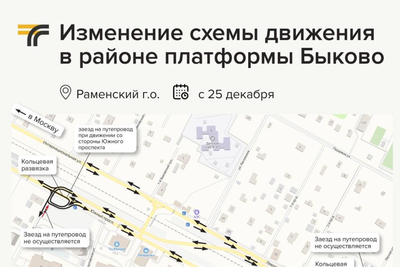 С 25 декабря изменится схема движения транспорта в районе платформы Быково