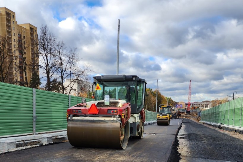 Подрядчик также сообщил, что на самом мосту завершают установку шумозащитных экранов, мачт освещения и устройство дорожных инженерных коммуникаций. Одновременно с работами на эстакаде - асфальтированием съезда и установкой шумозащитных экранов - рабочие устраивают съездные кольца автодороги и прокладывают локальную ливневую канализацию.