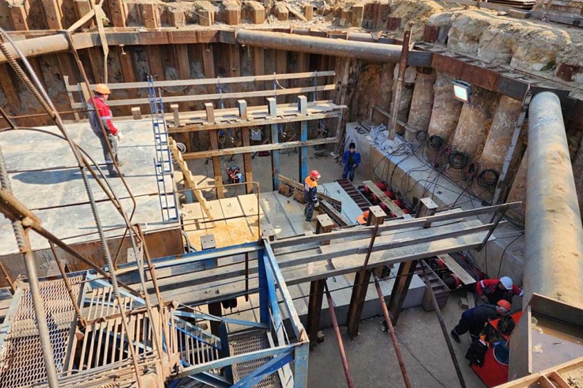 «Сейчас выполняем продавливание первой секции тоннеля. Прошли около пяти метров», — сообщил главный инженер филиала АО «ДиМ» — Мостоотряд-114 Олег Шурыгин.